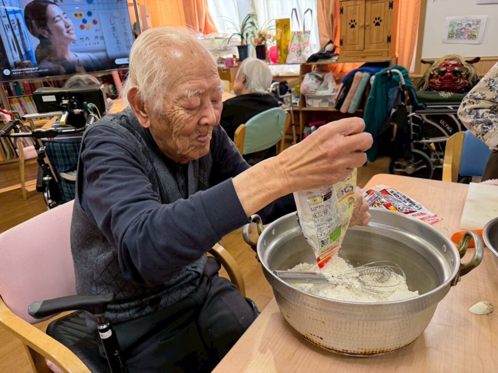 「もっと混ぜて!」とアドバイスを受けながら