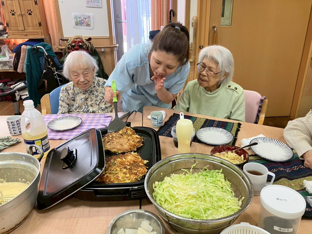 先日、昼食に皆でお好み焼きを作ろう!!と