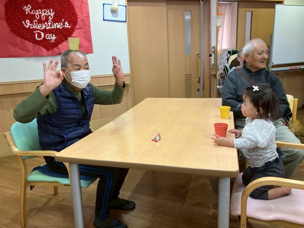 コップを頭にのせて、笑わせようとしてる利用者🤣🤍