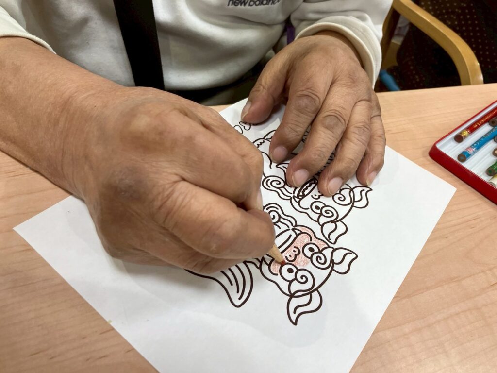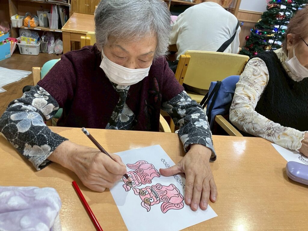 シーサーの絵付け