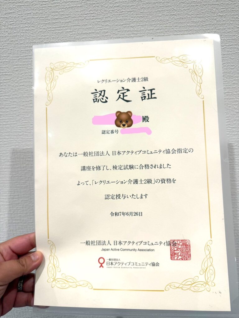 今年の夏に【レクリエーション介護2級】の資格に