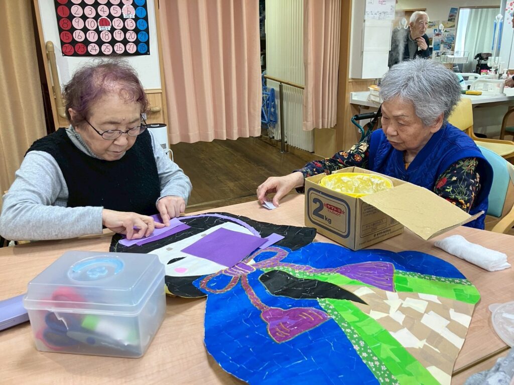 貼る作業の利用者様に折り紙を選んで